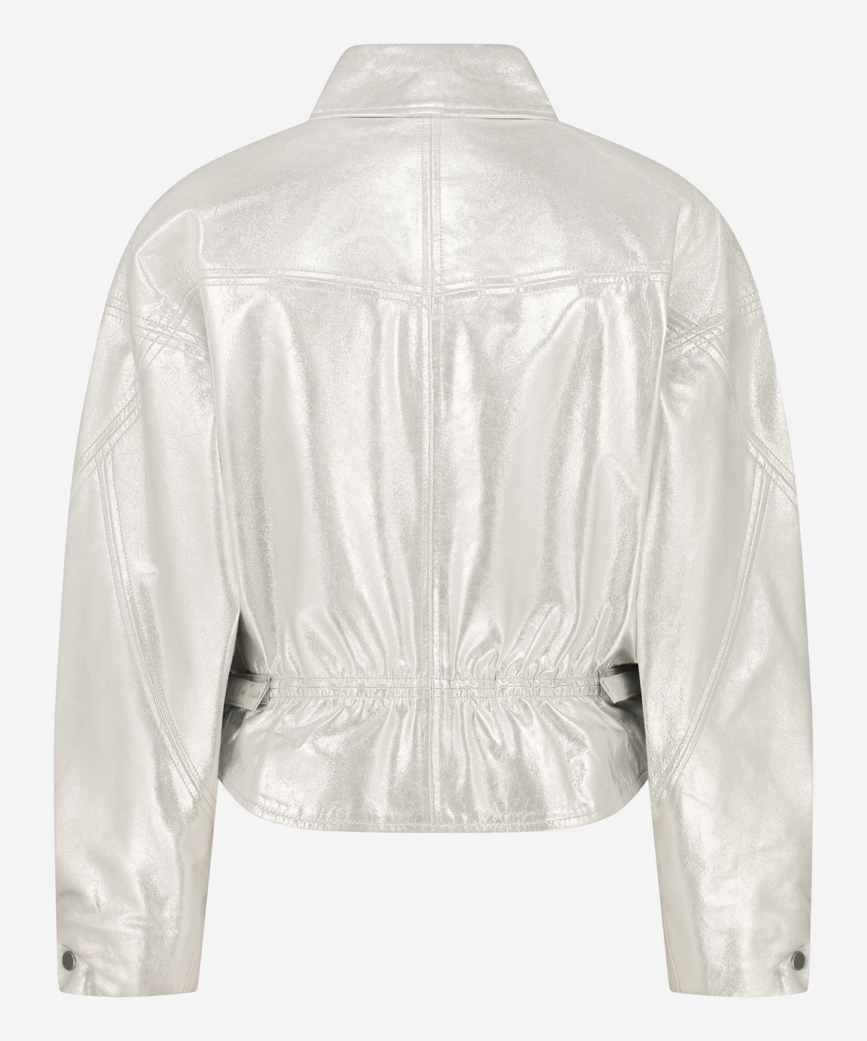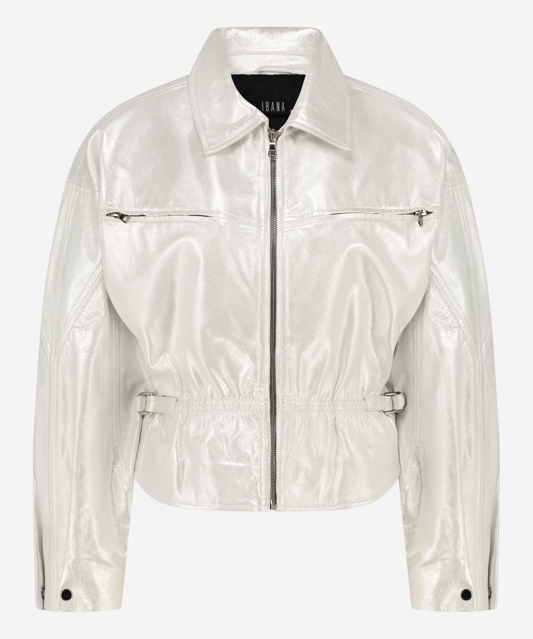 De Jules Metallic Jacket in de kleur Sparkling Silver is de eye-catcher voor dit seizoen. De jas is gemaakt van hoogwaardig non-stretch kwaliteitsleer en heeft een oversized model. De jas heeft een elastiek rondom de taille, die je zelf kan verstellen, voor een meer getailleerde look. Op de voorkant zijn er twee borstzakken.
