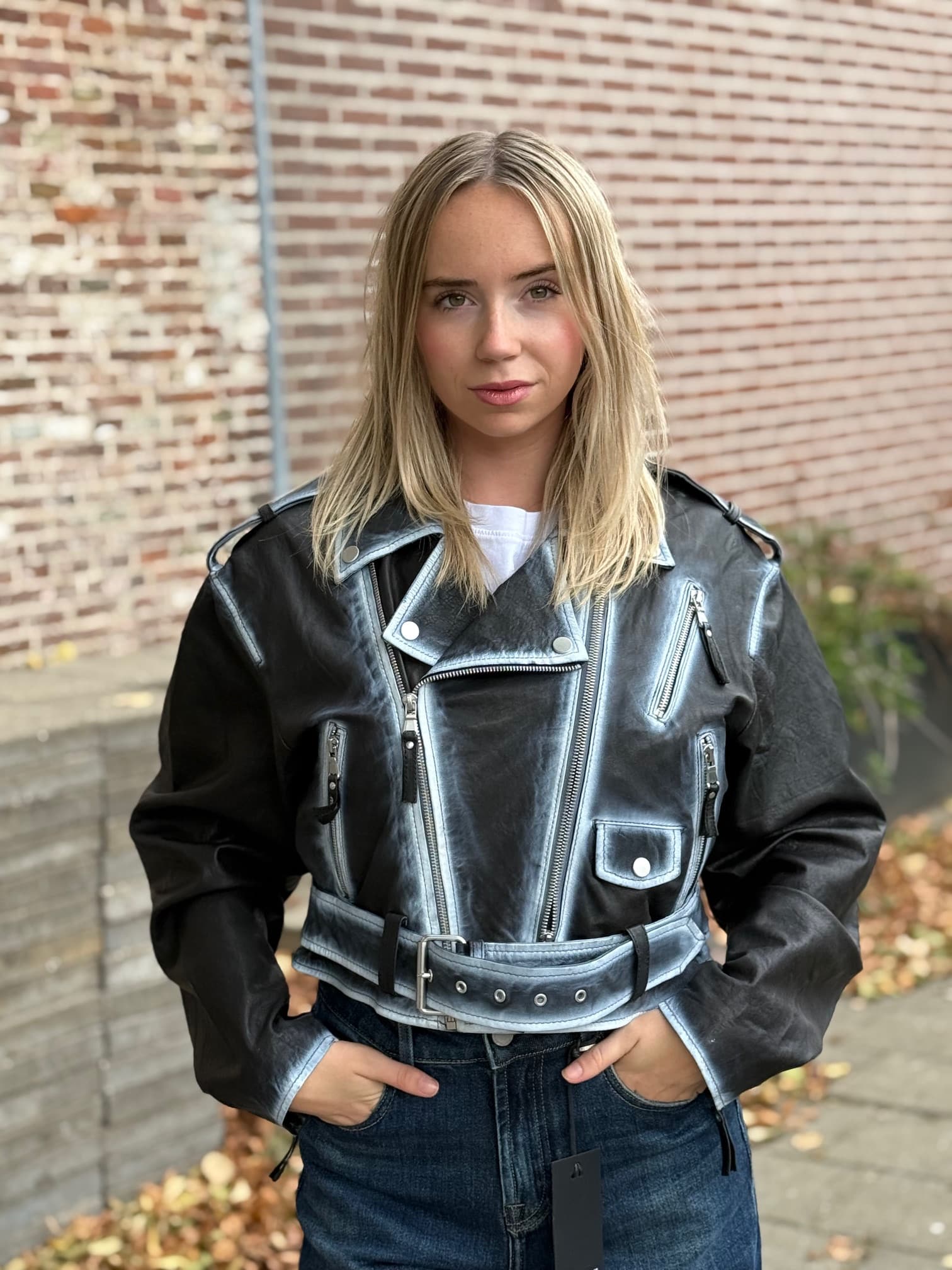 Een echte eyecatcher! De IY Cara is een stoere leren jas met een moderne twist. Het klassieke design met reverskraag en drukknopen wordt gecombineerd met een schuin lopende ritssluiting en een ceintuur met gesp aan de zoom. Dankzij het unieke Ghostlining-detail is dit geen standaard leren jack – dit is een jas waar je nog een tweede (of derde) keer naar kijkt.