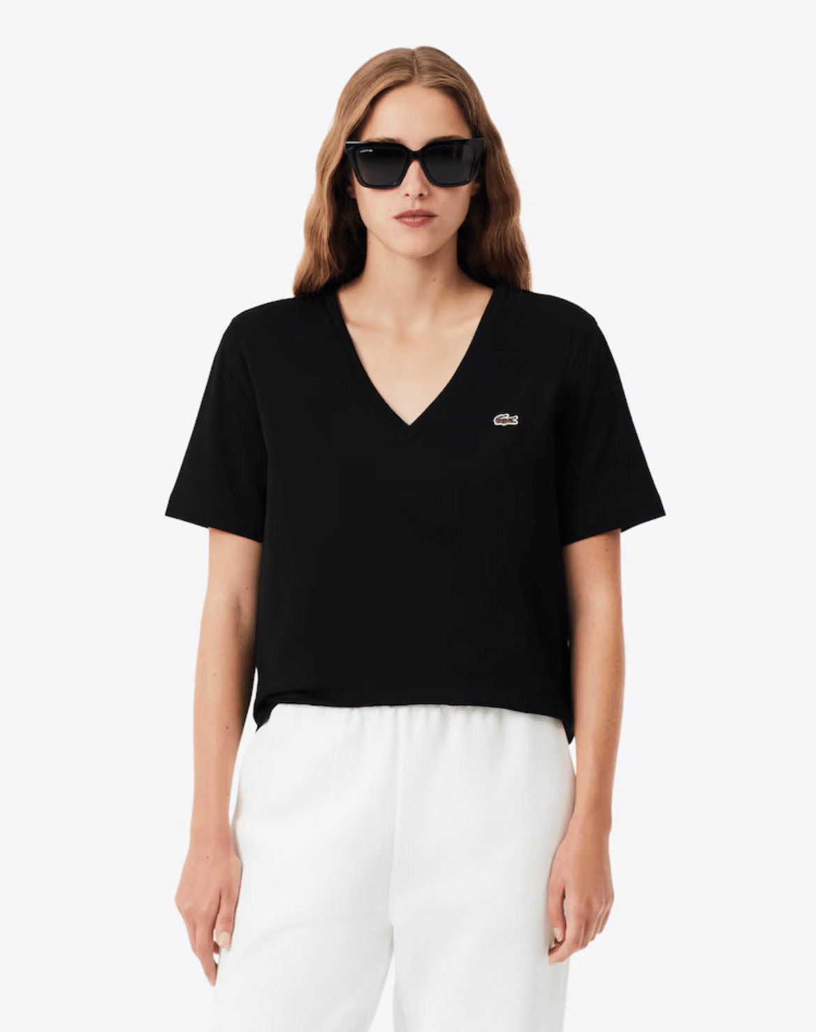 Lacoste relaxed fit zacht katoenen t-shirt met v-hals zwart